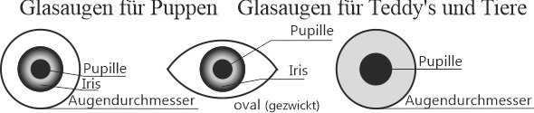 Ich biete hier eine sehr große Auswahl an Glasaugen für Puppen, Bären, Tiere, Film und Fernsehen in tausenden Variationen.