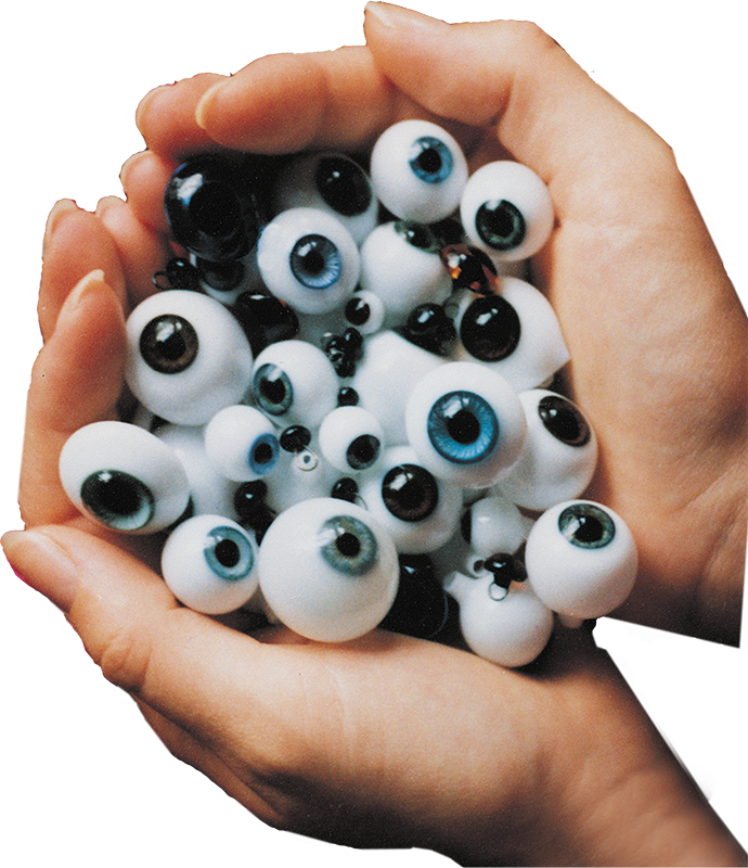 Das Angebot umfasst Augen in den Größen 2 mm bis 100 mm für jeden erdenklichen Zweck.